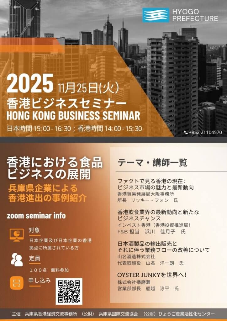 本セミナーでは、香港の貿易促進機関である香港貿易発展局及び香港政府の投資促進機関である投資推進局(インベスト香港)から、香港経済の概況や香港政府の取組について解説してもらいます。また、香港に食品を輸出している県内企業から、ビジネス展開事例についてご紹介いただきます。