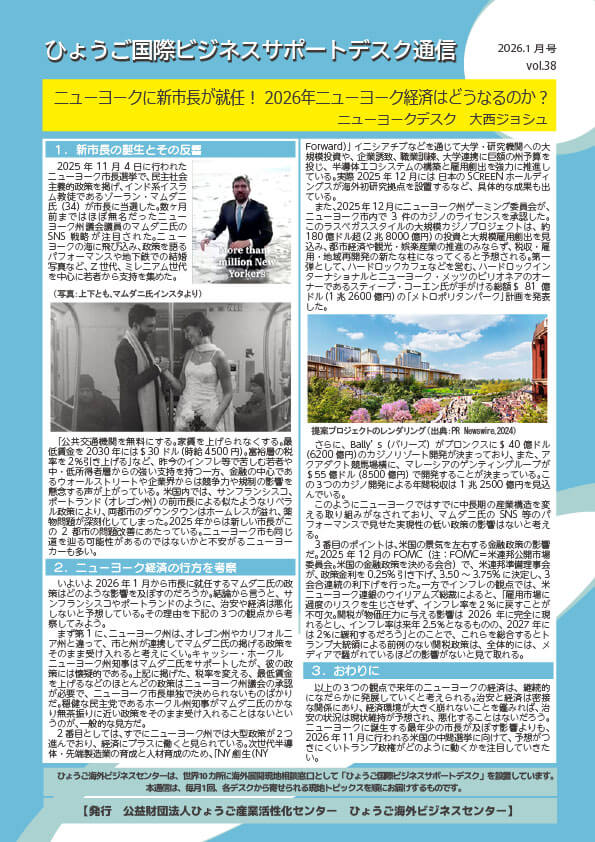 「ひょうご国際ビジネスサポートデスク通信 ~2026年1月号/ニューヨーク~」を掲載しました